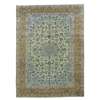the eau de nil field with indigo lattice medallion, similar spandrels, within light brown border