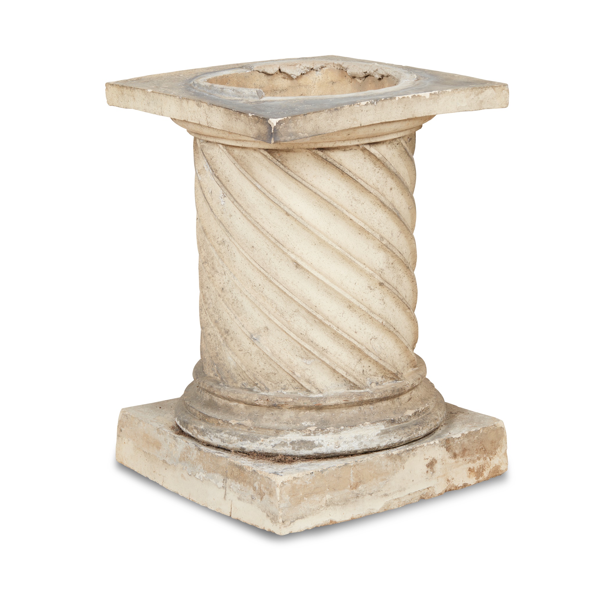 the square top above a spiral fluted column on a square base