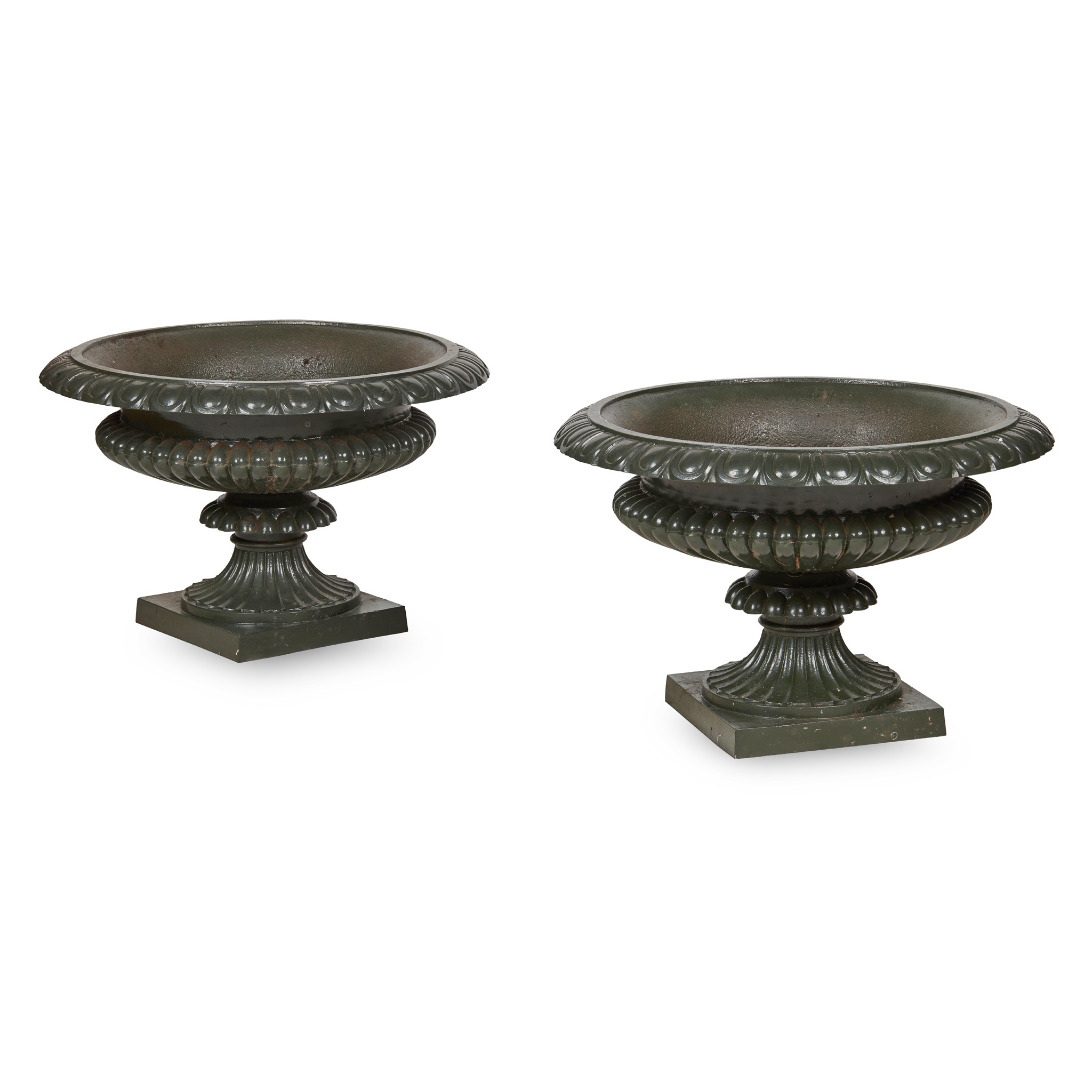 PAIR OF LARGE CAST IRON GARDEN URNS