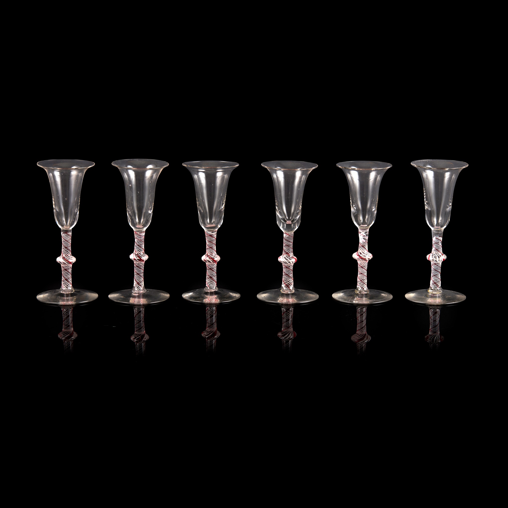 SET OF SIX CONTINENTAL RED-ENAMEL TWIST-STEM WINE GLASSES