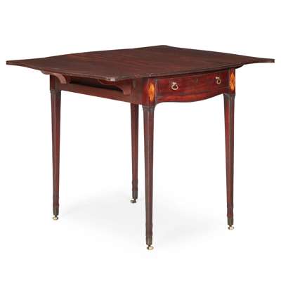 GOOD GEORGE III MAHOGANY AND INLAY BUTTERFLY PEMBROKE TABLE