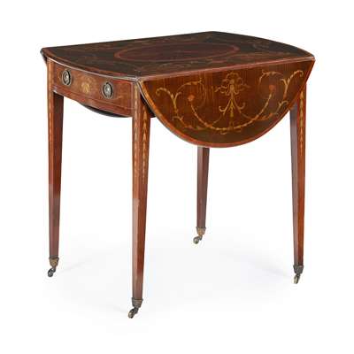 GEORGE III MAHOGANY, KINGWOOD AND ROSEWOOD MARQUETRY PEMBROKE TABLE