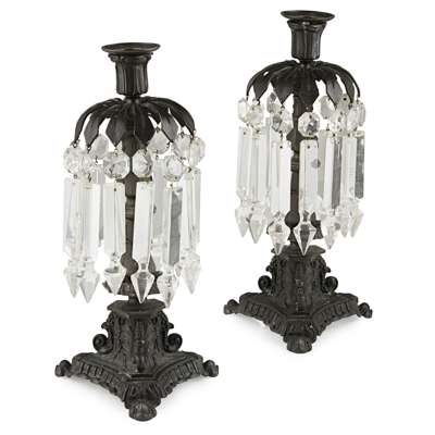 PAIR OF REGENCY PATINATED BRONZE CANDLESTICKS