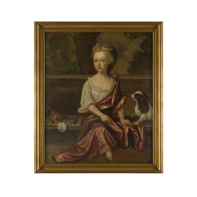 THREE QUARTER LENGTH PORTRAIT OF A YOUNG GIRL WITH A SPANIEL