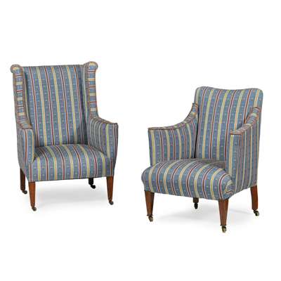TWO EDWARDIAN UPHOLSTERED ARMCHAIRS