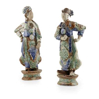 TWO CHINESE SHIWAN GLAZED POTTERY FIGURES