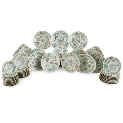 ASSEMBLED FAMILLE ROSE CELADON-GROUND PART DINNER SERVICE