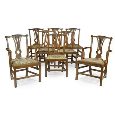 SET OF EIGHT PROVINCIAL GEORGIAN STAINED ASH DINING CHAIRS