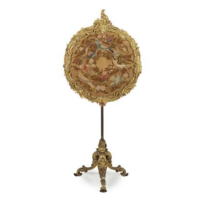 VICTORIAN GILTWOOD NEEDLEWORK POLESCREEN