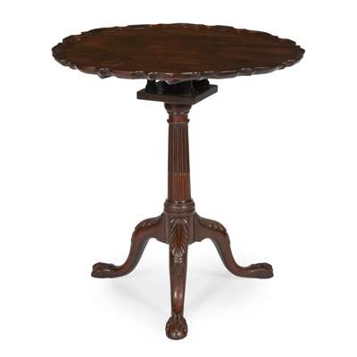 EARLY GEORGE III MAHOGANY PIECRUST BIRDCAGE TEA TABLE
