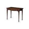 the serpentine top with a moulded edge above a frieze with rope-twist moulding, raised on channel moulded square tapered legs ending in toupie feet