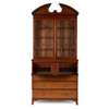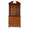 the broken arch dentil moulded pediment above a pair of astragal glazed doors opening to shelves; the lower part with a secretaire drawer opening to drawers and pigeon holes, above three long drawers, raised on bracket feet