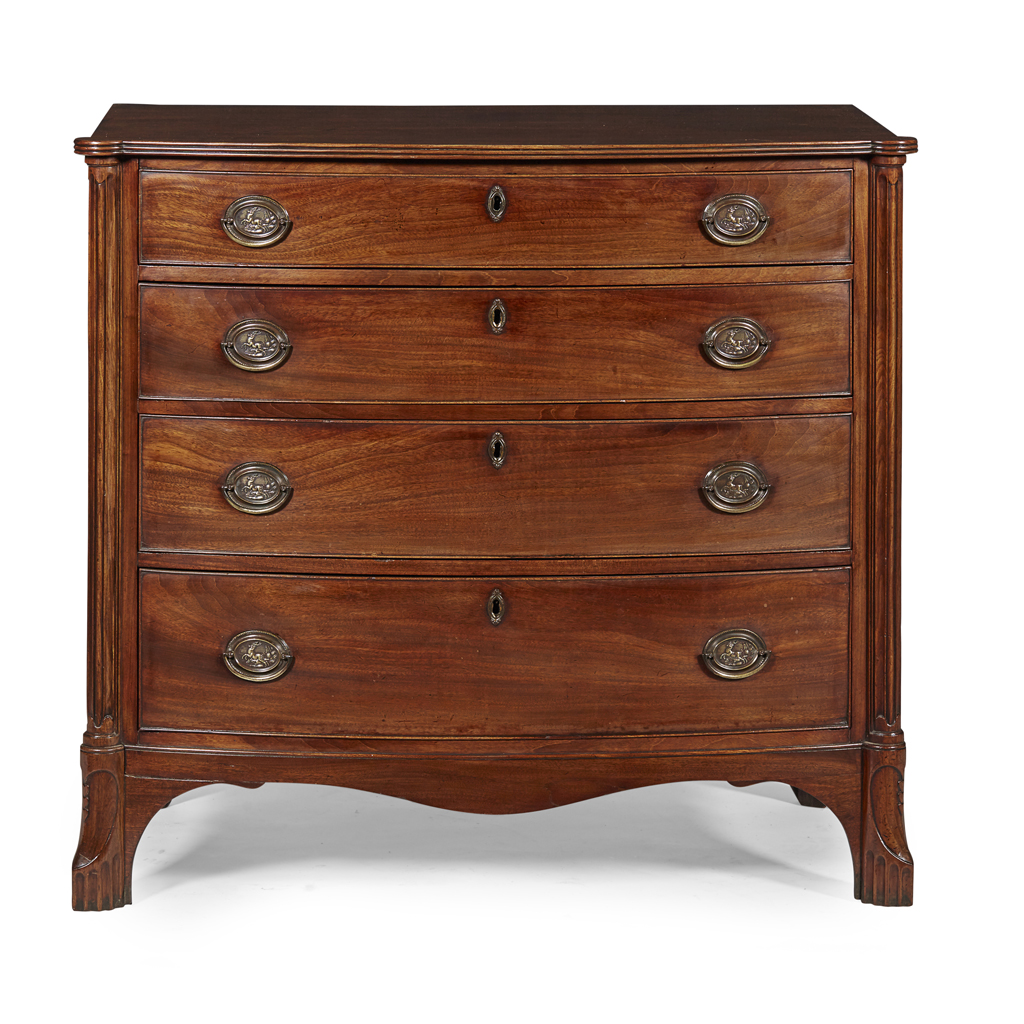 LATE GEORGE III MAHOGANY BOWFRONT CHEST OF DRAWERS, POSSIBLY SCOTTISH