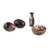 comprising a small seal with knopped handle, 5.5cm high; two small egg-forms, 5cm long approx.; and a miniature bowl, 5.5cm diameter (4)