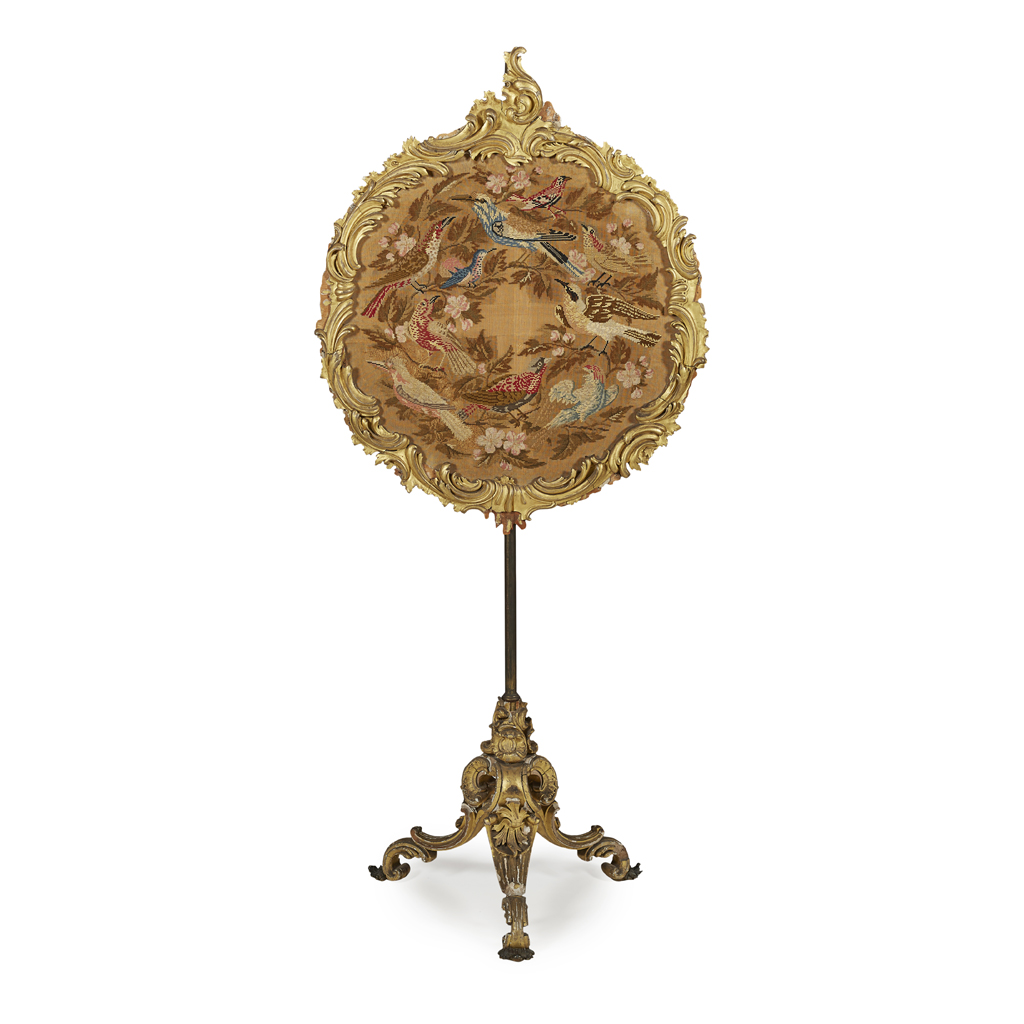 VICTORIAN GILTWOOD NEEDLEWORK POLESCREEN