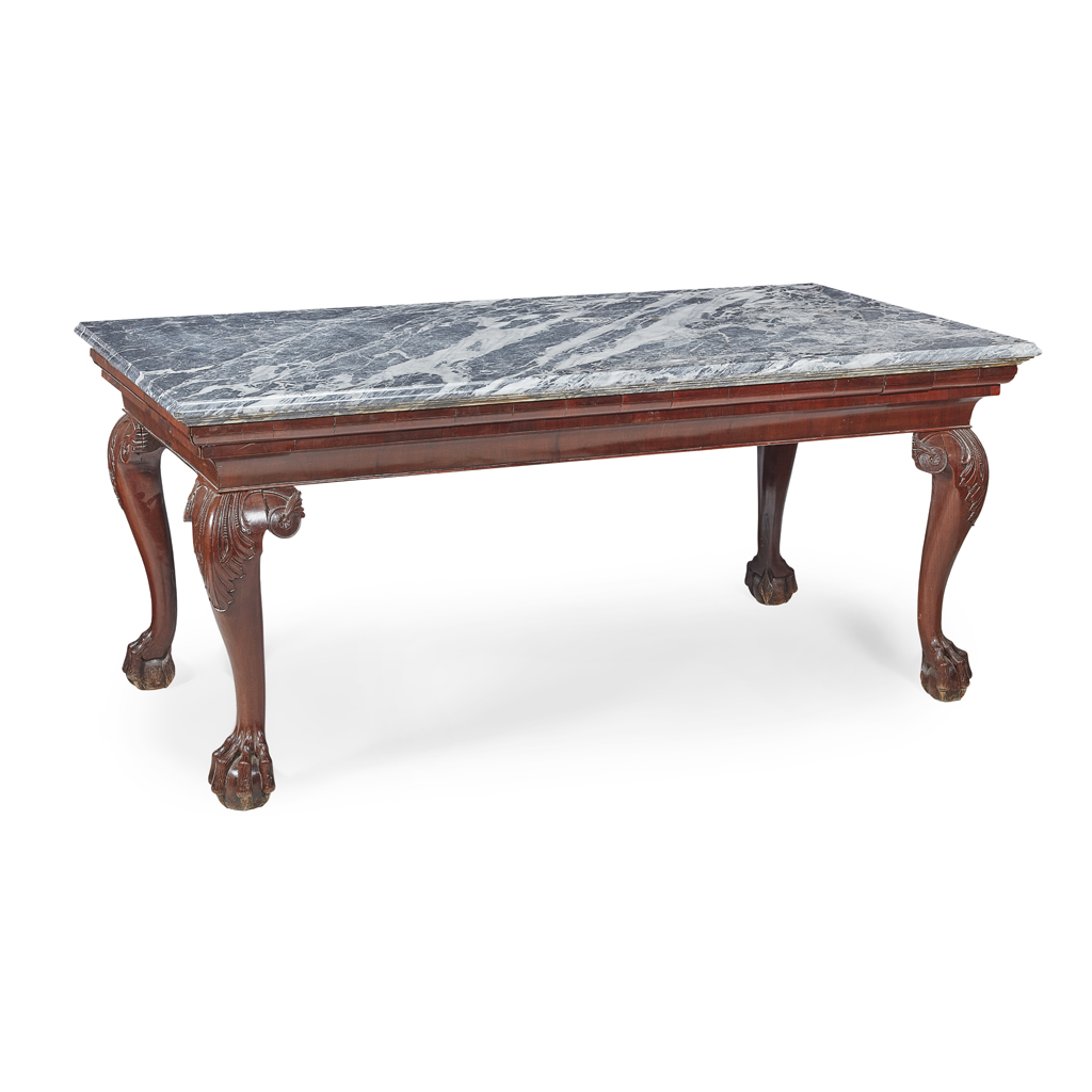 IRISH GEORGE III STYLE MAHOGANY MARBLE TOPPED SIDE TABLE