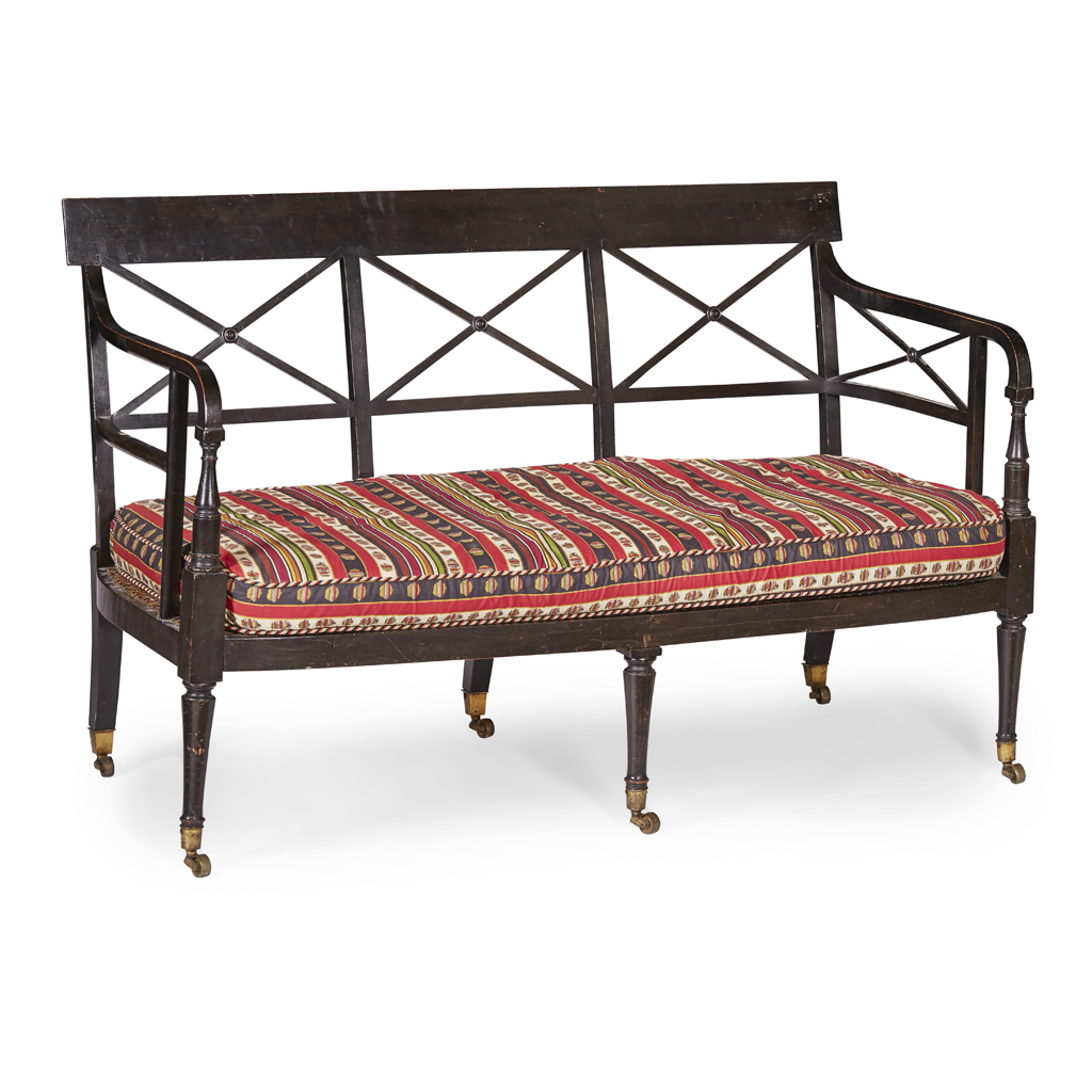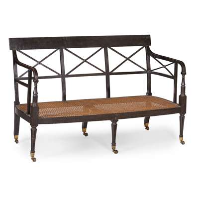 REGENCY EBONISED AND CANED SETTEE