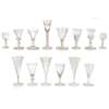 comprising a pink and air twist glass engraved with gilt flower swags, on a folded foot, 14cm high; three champagne flutes with stippled bowls, 15cm high; six assorted port glasses, all with knopped stems, two with folded feet, one wheel cut and one etched, the tallest 12cm high; a pair of facet cut wine glasses, 11.5cm high; and a pair of small glasses with etched vine decoration, 8cm high (14)