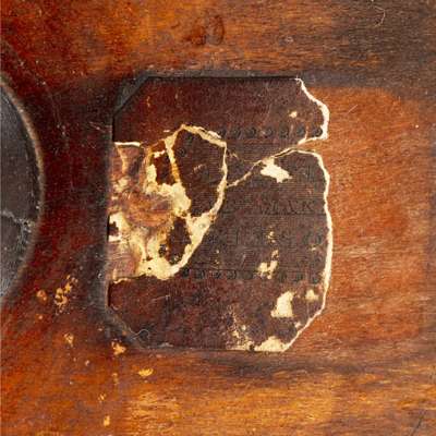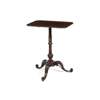 the rectangular top with a bead moulded edge, on a turned and tapered slender baluster column, raised on acanthus carved cabriole legs ending in scrolled toes, with partial trade label