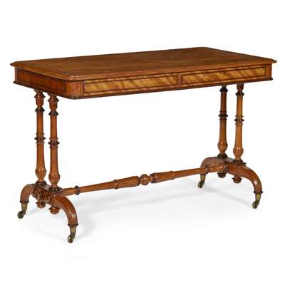 REGENCY SATIN BIRCH AND PATRIDGE WOOD LIBRARY TABLE, BY THOMAS SEDDON
