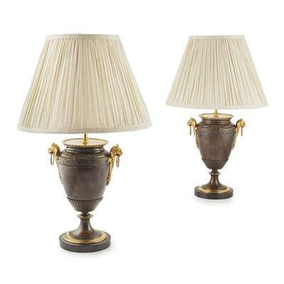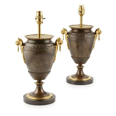 PAIR OF REGENCY GILT AND PATINATED BRONZE TABLE LAMPS