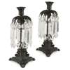 with cast nozzles above cut-glass prisms, raised on knopped columns and tri-form bases with acanthus leaves and scrolls (2)