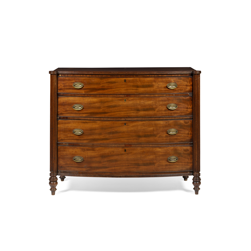 GEORGE IV MAHOGANY BOW FRONT CHEST OF DRAWERS