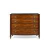 the bowfront top with outset rounded corners and a reeded edge, above four long drawers flanked by reeded corner columns, raised on turned feet