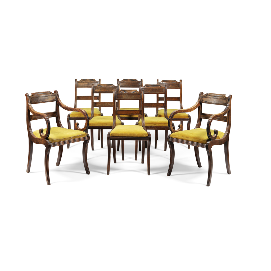SET OF EIGHT REGENCY STYLE MAHOGANY DINING CHAIRS