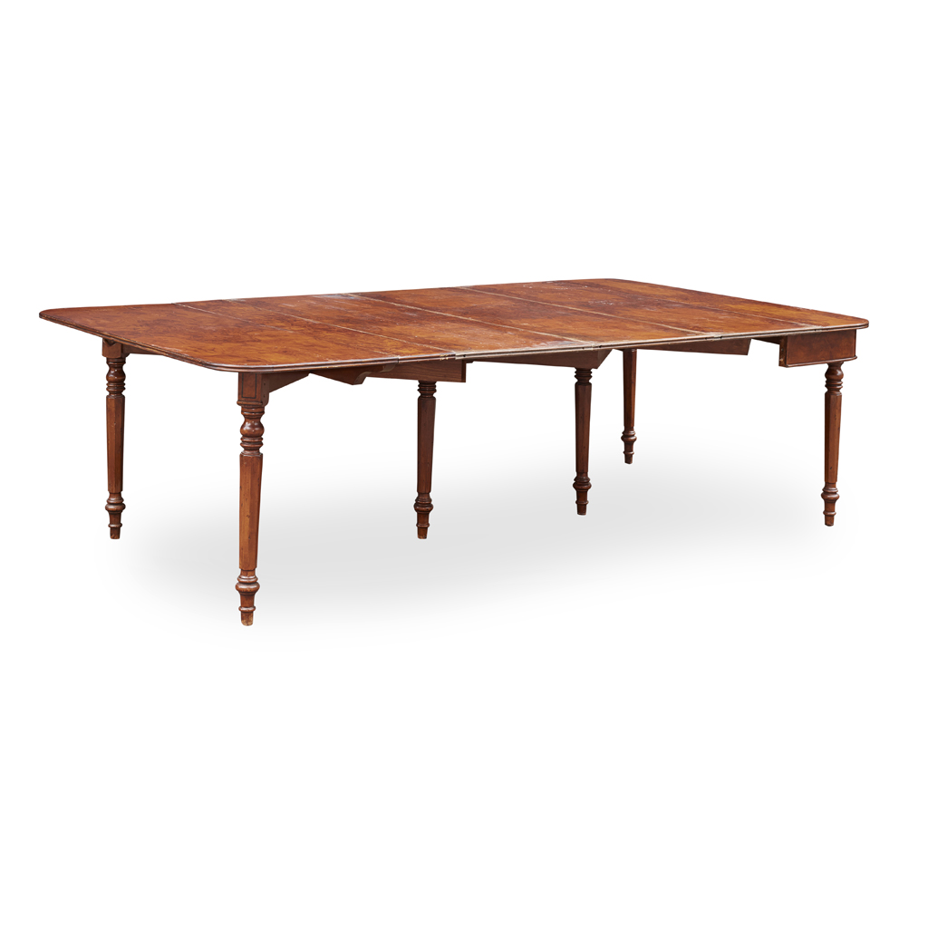 REGENCY STYLE WALNUT SCISSOR ACTION DINING TABLE