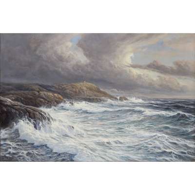WAVES BREAKING ON A DESERTED ROCKY COAST