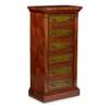 the rectangular top above six short drawers with green leather fronts, on a plinth base