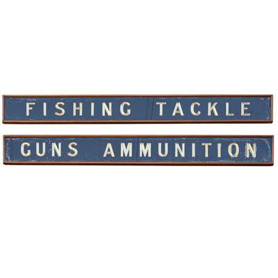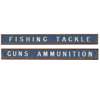 with recessed gilt letters against a black enamelled glass ground, the first GUNS AMMUNITION, and the other FISHING TACKLE, in mahogany frames (2)