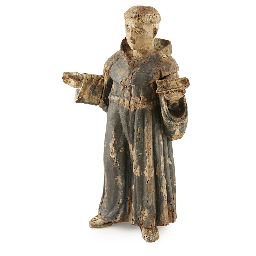 FRENCH CARVED POLYCHROME FIGURE OF SAINT ANTHONY