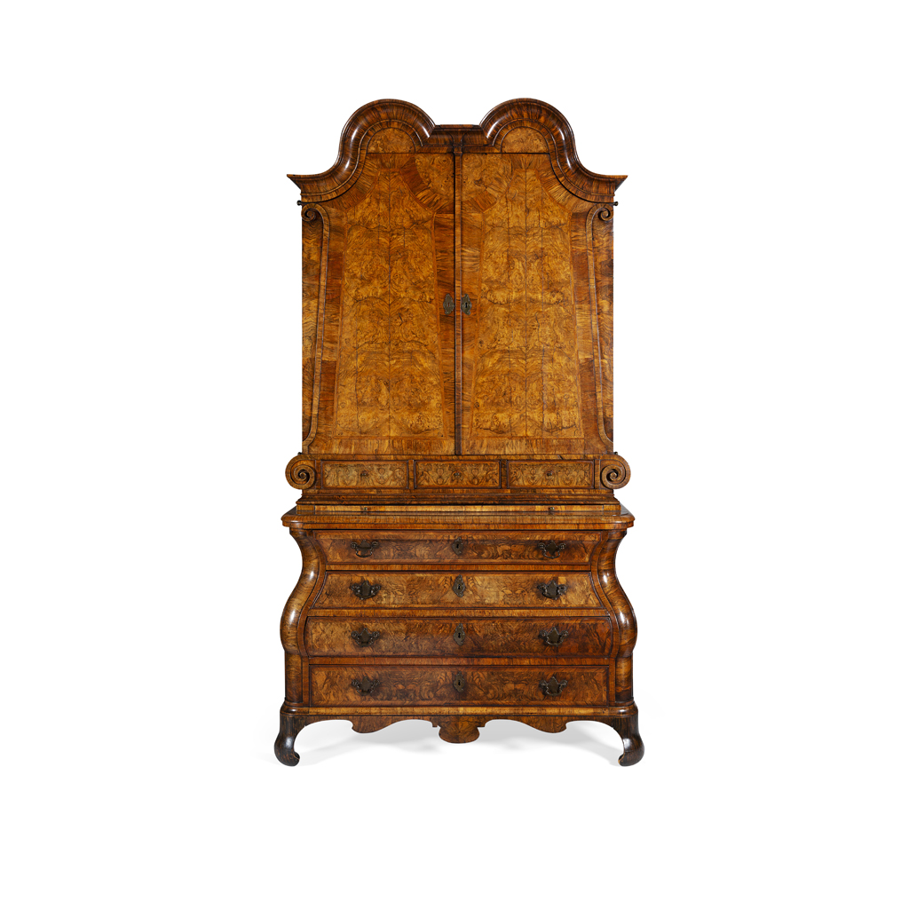 DUTCH WALNUT DOUBLE DOME BOMBE CABINET-ON-CHEST