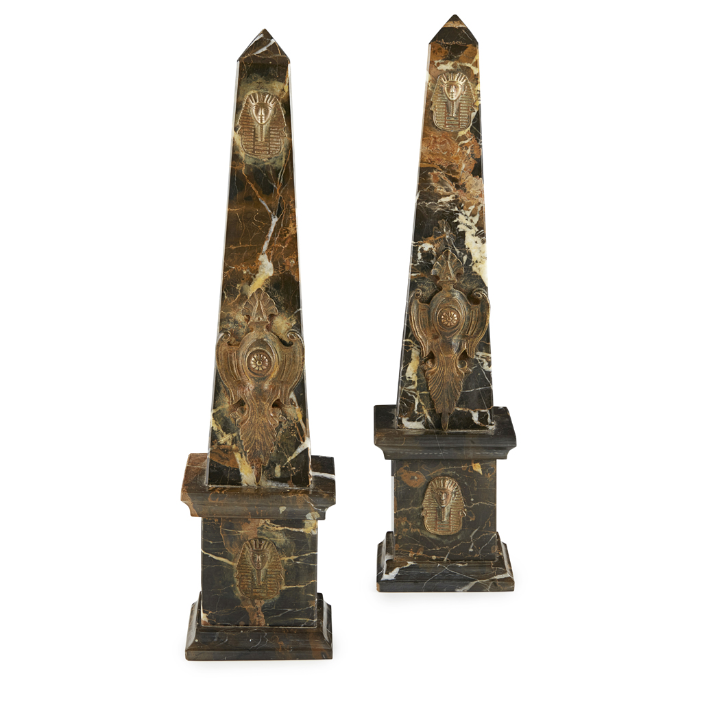 PAIR OF GILT METAL MOUNTED MARBLE OBELISKS