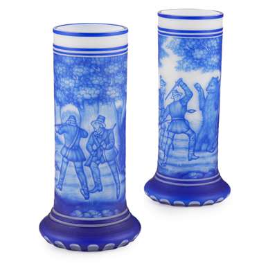TWO BOHEMIAN CASED AND ACID-CAMEO GLASS VASES