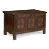 the hinged top above a triple panel front carved with stylised flowers, raised on stile feet
