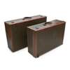 covered in signature monogram brown leather, with embossed leather trim and stamped brass hardware, opening to void leather-lined interiors with straps and buckles (2)