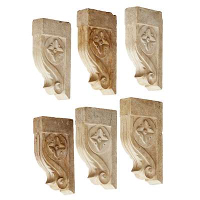 SIX LARGE TURKISH CARVED STONE CORBELS