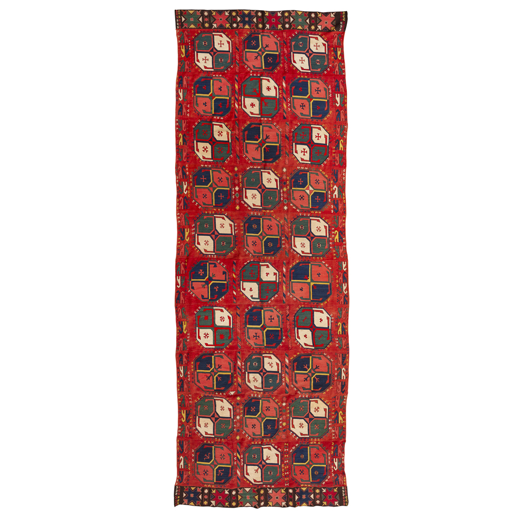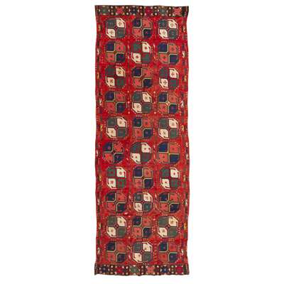 the red field with three columns of ten guls, within narrow red hooked 'h' border, star elem panels