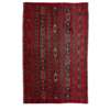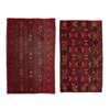 each with red field, one with ikat style pattern, the other with patterned band design (2)