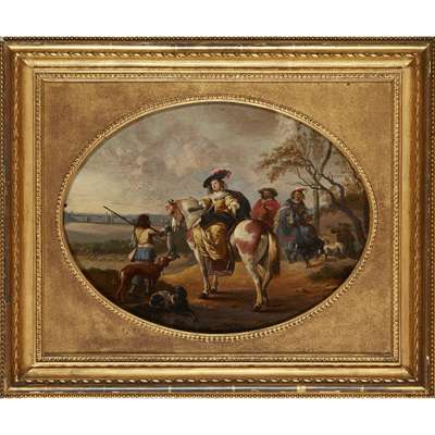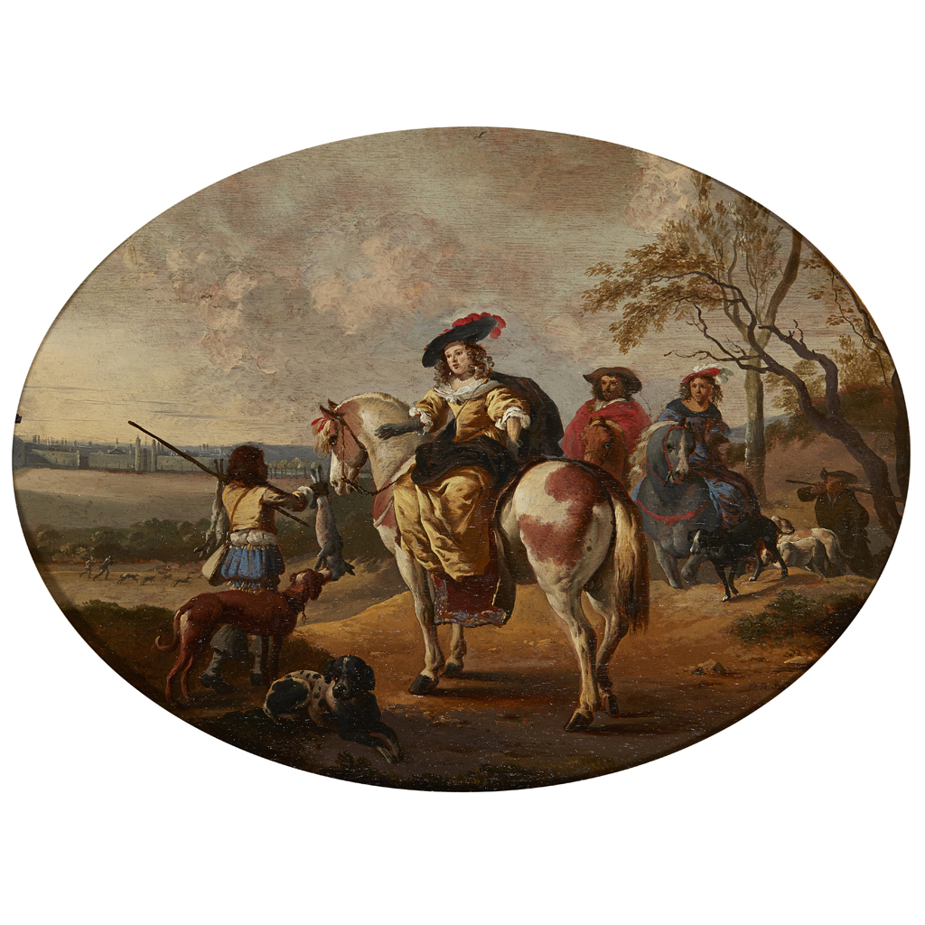 HUNTING PARTY ON THE OUTSKIRTS OF A WALLED TOWN