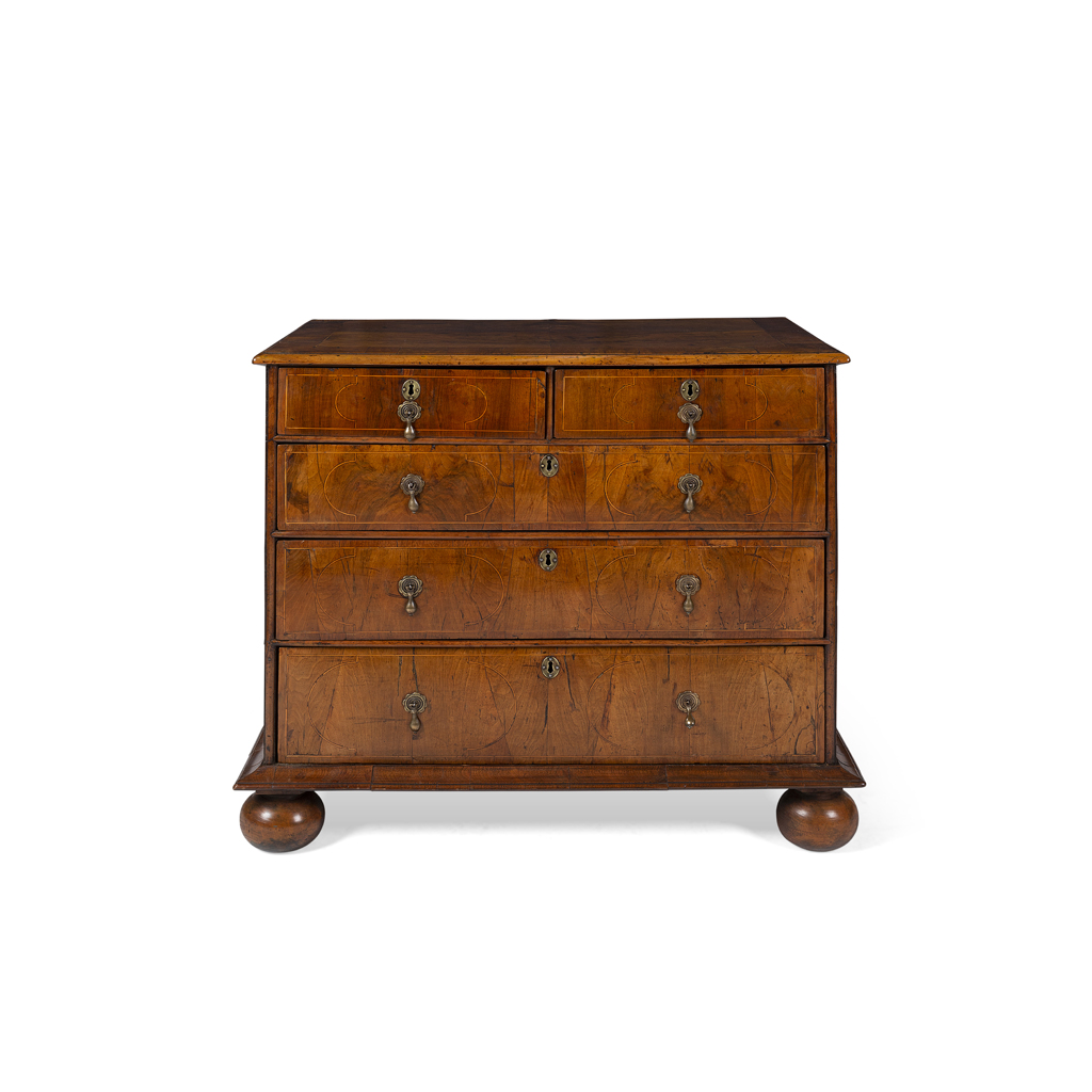 QUEEN ANNE WALNUT AND INLAY CHEST OF DRAWERS