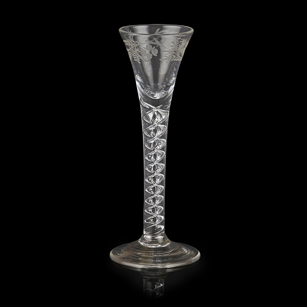 GEORGIAN ENGRAVED TWIST STEM CORDIAL GLASS