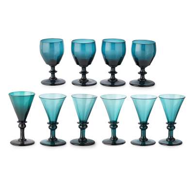 SET OF SIX VICTORIAN GREEN WINE GLASSES