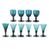 with conical bowls above annular and rounded shoulder knops on plain stems and flat feet, 13/12.5cm high; together with FOUR SMALL REGENCY GREEN GLASS RUMMERS, with barrelled bowls on blade knop stems and flat feet, 11.5/11cm high (10)