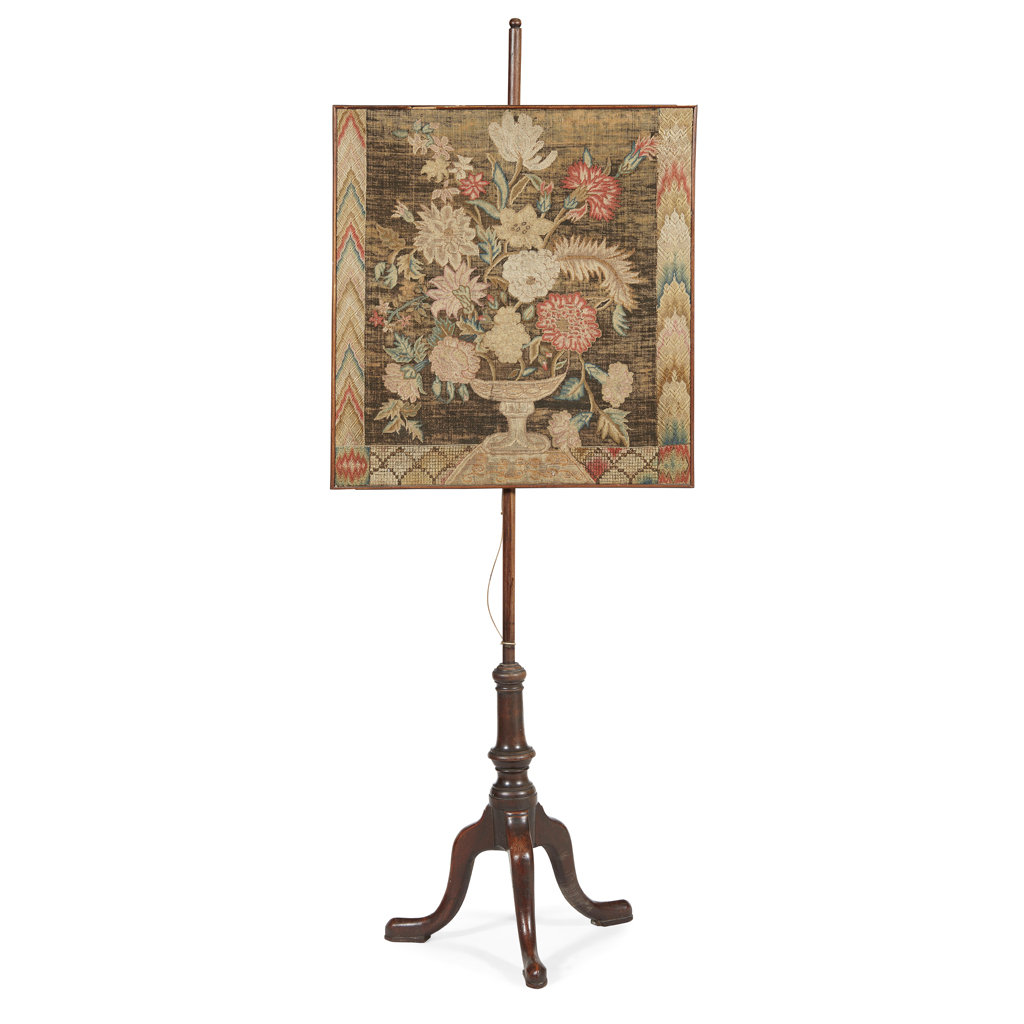 GEORGE III MAHOGANY AND NEEDLEWORK POLESCREEN