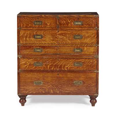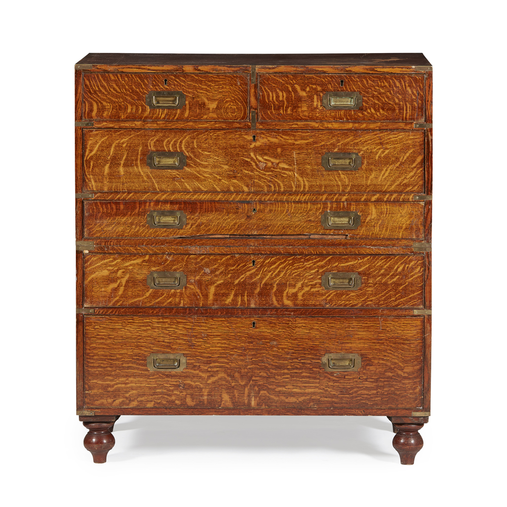 OAK AND BRASS BOUND CAMPAIGN SECRETAIRE CHEST