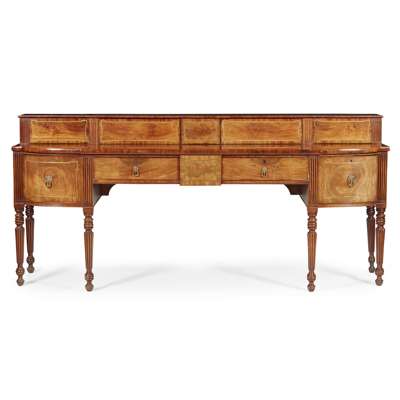 REGENCY MAHOGANY AND SATINWOOD STAGEBACK SIDEBOARD